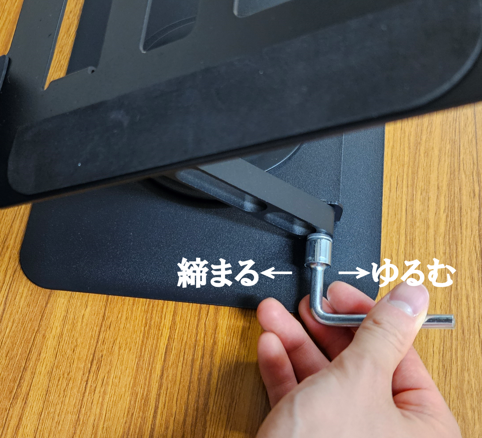 同梱されております六角スパナを使用し、金具の締まりを調整してください。